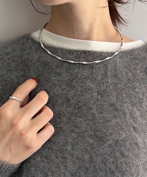 ツイストデザインが首元をキレイに見せるチョーカー 【POINT】 ・立体感が出るツイストデザインが首元をほっそり見せ ・1つで程よい存在感 ・動きが出るチェーンを使っていて自然な着け心地 ・後ろは留め具付き ・オンオフ問わず使いやすいアイテム 【サイズ】 長さ:43cm 【素材】 真鍮 【気になる商品は「お気に入り」登録を】 ハートマークをクリックし、お好きなカラーを選んでお気に入りに登録すると 入荷情報や残り1点の通知、完売カラーの再入荷、セール情報などを受け取ることができます。 ※撮影場所やお使いのモニター環境により若干お色味が異なる場合がございます。 特にロケの撮影では明るく見える傾向にございます。詳細撮影画像で色味をお確かめくださいます様お願いいたします。 ※サンプルで撮影をしております。若干の仕様が変更になる場合がございますので予めご了承の上ご注文くださいますようお願いいたします。 ※サンプルでの採寸のためあくまで目安となります。予めご了承ください。