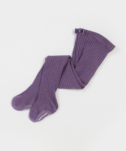 ウール混であたたかさをキープするリブタイツです。太幅のうねがシンプルなデザインに表情を持たせてくれます。ウエストにはリボン飾りを添えて女の子らしいワンポイントをプラス。ワンピースやスカートとレイヤードすれば防寒しながらおしゃれが楽しめます。