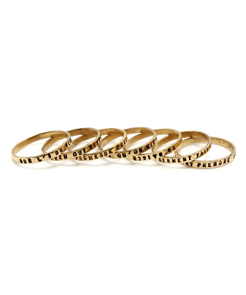 男女問わず幅広い年代のファンの心を捕らえて離さない、世界中で人気を博しているブランド「SERGE THORAVAL」。 SERGE THORAVAL / セルジュ トラヴァル 1点1点ハンドメイドの独特の雰囲気を持ち合わせているブランド。フランスの有名な小説‘CYRANO DE BERGERAC’の中の詩や五感(視覚、聴覚、臭覚、味覚、触覚)の文字をジュエリ-に刻まれています。1999年1月、交通事故によりデザイナーSERGE THORAVALが他界。彼のコレクションはパ-トナ-であるGENEVIEVE CHEVILLOTが引き継いでいます。 店舗へお問い合わせの際は下記品番をお伝えください。 品番:61-42-0740-588