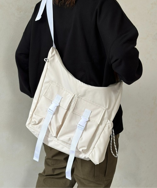 今季のトレンドアイテム!バックルがポイントの2ポケットショルダーバッグが登場! ベーシックなデザインで幅広くコーディネートに馴染みやすく、オールシーズン大活躍間違いナシのアイテム。 肩ひもは調整可能なので、肩掛けでも、斜め掛けでもその日の気分によってお使いいただけます。 【POINT】 ・マルチポケット+A4サイズも余裕で入る大容量で収納力抜群 ・ユニセックスで楽しめるシンプルなデザイン ・オレンジでアクセントを効かせたブランドタグがさりげないポイント 【COORDINATE】 スウェットやデニムなどのシンプルコーデのアクセントに。 荷物の飛び出しにくいデザインなので、旅行や自転車などのアクティブシーンにもおすすめ。 男女問わずお使いいただけるシンプルなデザインとマチ幅が広い大きめのサイズ感で、デイリー使いからちょっとした旅行まで様々なシーンで活躍してくれること間違いなしのアイテムです。 【お買い物をよりお楽しみいただくために】 商品のお気に入り登録(ハートマークをクリック) 完売カラーの再入荷通知や、ラスト1点の通知、セールの通知も受けることができます。 ブランドのお気に入り登録 新商品や再入荷など、いち早くブランドのお得な情報を受け取ることができます。 ※生産の都合上、お届け時期が前後する場合がございます。 ご注文いただいた予約商品のお届け時期の確認は、注文履歴ページより行えます。 ※お色物は色移りする可能性がございます。 着用、お取り扱いは商品についておりますアテンションタグを必ずご確認ください。 ※商品画像はサンプル品を使用しているため、実際の商品と仕様、加工、サイズが若干異なる場合がございます。 また、可能な限り実物に近いカラーにて掲載していますが、使用しているパソコンのモニター設定や、 携帯電話のメーカー・機種により実際のカラーと異なって見える場合がございます。予めご了承ください。