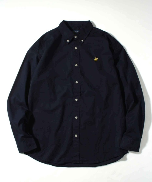 【Beverly Hills Polo Club/ビバリーヒルズポロクラブ】ワンポイント刺繍 ボタンダウン長袖シャツ/カーボンピーチツイル デニム