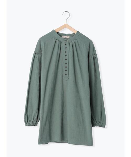 小さなボタン並びがレトロで可愛らしいチュニック。 ギャザーの生み出す柔らかなシルエットが、心くすぐるデザイン。スタイリングもほっこりと癒してくれるナチュラルな素材感も魅力です。 ロング丈で気になるボディラインも優しくカバー。リラックスして着用できるアイテムです。 ※商品画像は、撮影環境やお客様のご利用のPC・スマートフォンのモニター環境などにより実物と色味に差異がある場合がございます。