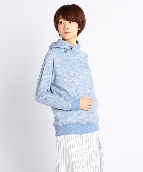 ボタン付きで首元をきっちりと留められる、プルオーバーデザインのパーカーです。全体はほど良くタイトなシルエットで、インナーとしてももたつかずに着られます♪ワードローブの定番パーカーこそ、こだわりデザインで着こなしに差をつけてください。