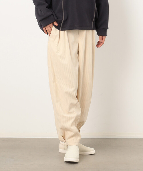 ◆ONIGIRI(おにぎり)のコーデュロイ 鳶パンツ◆《デザイン》とび職人の方が履く鳶パンツを参考にして、コーデュロイで作ったカジュアルな鳶パンツです。太ももにはゆとりをたっぷり持たせ、裾にかけてすぼませたシルエットです。裾口は釦で調節出来ます。脇についたパッチポケットのONIGIRIロゴ刺繍がワンポイント。ウエストはゴム使用でとても履き心地が良いです。《素材》 タテ畝のある起毛した織物で、丈夫な素材です。温かみのある表面感が特徴で日常着として着やすく、軽くて柔らかいです。ポリエステルの為、お手入れがしやすくシルエットが綺麗に出ます。……………………透け感:なし厚さ:普通伸縮性:なし光沢感:なし裏地:なしポケット:あり洗濯方法:洗濯機洗い可………………… #秋コーデ #冬コーデ #大人カジュアル※画像の商品はサンプルとなりますので実際の商品と仕様、加工、サイズが若干異なる場合がございます。※こちらの商品はFIVE FOXes独自の採寸方法となっています。本サイトのサイズガイドと採寸方法が異なる場合がありますのでご了承ください。