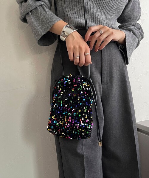 ◇fredy emue◇ 【2023AW】 今年大注目!取り入れるだけでトレンドスタイルが完成するスパンコールバッグ ●point ・トレンドのスパンコールバッグ ・小ぶりながら持つだけでコーデのアクセントになります ・スタイリングに馴染むシルバー・ゴールドと、カラフルでポイントになるブラック系の3色展開でのご用意 ・ミニサイズなのでパーティバッグとして、サブバッグとしても◎ 《収納の目安》 ・ミニ財布 ・スマートフォン ・リップ ●お取扱い上のご注意● *商品を長く愛用していただきたいため、アテンションタグを必ずご確認の上、着用又はお取り扱い下さい。 *店頭及び屋外での撮影画像は、光の当たり具合で色味が違って見える場合があります。商品の色味は、スタジオ撮影の画像をご参照下さい。 *商品画像に関しては出来る限り忠実に表示出来るよう努めておりますが、お客様がご利用のモニターの設定及び特性により、実際の商品と比較し色味に若干の誤差が生じる場合があります。 ◇商品のお気に入り登録◇ 【お気に入りに登録 ♡マークをクリック】を是非ご活用ください! 再入荷の通知や、ラスト1点の通知、セールの通知がいち早く届きます。 ◇ブランドのお気に入り登録◇ 新商品や再入荷など、いち早くブランドのお得情報が届きます。
