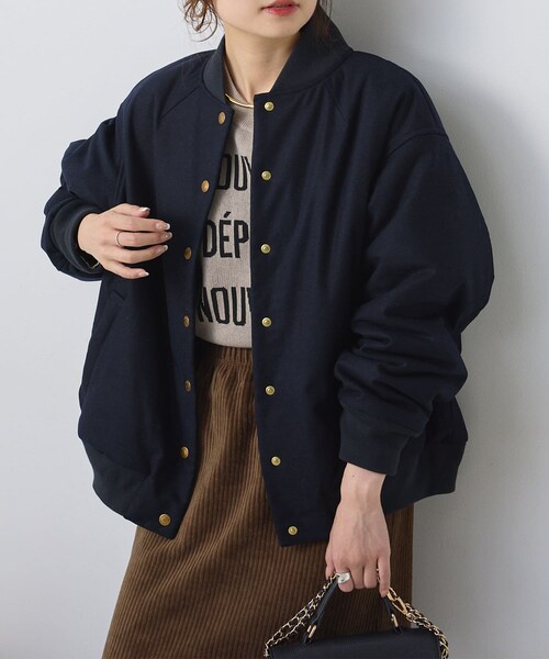 ピュアルセシン 2023 AW collection【neo classic】自然と共生と快適性を加えたラグジュアリー感のあるものと伝統と文化に今シーズンらしい遊び心を加えたネオクラシックを融合したスタイル◇きちんと見え×カジュアル、テイストのMIXされたジャケットでコーディネートに遊びをプラス◇●デザインリブ使いが特徴のスタジャンのディティールを、わざと上品見えな素材に落し込むことでMIXされたテイストを楽しめる1着。同色に仕立てたリブは、冷たい空気を防ぐだけでなくデザインを引き締める効果も。ゴールドのスナップボタンが全体の雰囲気を華やかに導きコーディネートのアクセントに。配色の裏地は袖までしっかり付いており、軽アウターながら暖かく着用していただけます。●カラー展開チャコールグレー/ブラックのベーシックな2色展開。●素材ウォーム感のあるポリエステル素材。フェルトの様な微起毛が高見えする生地感。●スタイリングリブやゴールドのボタン使いなど、存在感のあるジャケットなので、コーディネートのメイン使いにオススメです。腰周りのすっきり見える着丈なので、シンプルなワンピースコーデのアクセントに最適。ロゴデザインのアイテムをインに着れば、カジュアルダウンの着こなしも楽しめます。スラックスを選べば、生地感で調和し大人コーデも可能!合わせるアイテムに馴染むので着回しの幅が広がります◎===============================透け感:なし裏地:あり伸縮性:なし光沢感:なし生地の厚さ:普通【スタッフコメント】年齢:30代後半/身長:154cm/普段着用サイズ:Mサイズサイズ感:大き過ぎないサイズ感でスッキリと着られました。程良いゆとりはあるのでニットや厚手過ぎないスウェットを合わせても着られそうです。素材感:表地はウール生地のような雰囲気でやや張りのある生地感です。===============================※撮影場所やお使いのモニター環境により若干お色味が異なる場合がございます。特にロケの撮影では明るく見える傾向にございます。※予約商品はサンプルで撮影をしております。若干の仕様が変更になる場合がございますので予めご了承の上ご注文くださいますようお願いいたします 。