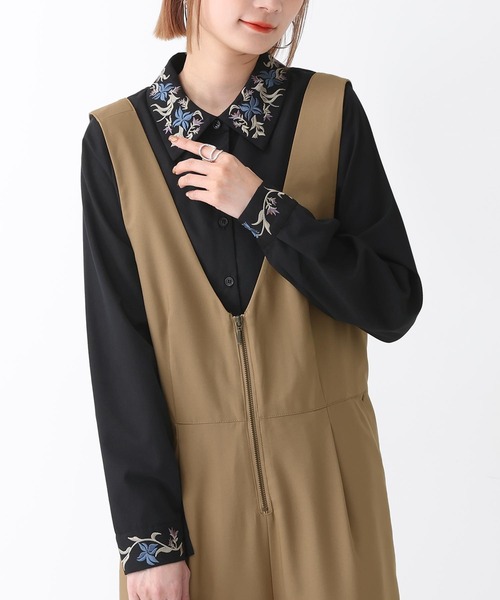 襟とカフスにオリジナル柄の刺繍を施したデザインシャツ。可愛すぎない花柄とニュアンス感じるくすみカラーで、落ち着いた着こなしにぴったりな一着。 一枚でもレイヤードスタイルでも着回せます。 程よくハリ感があり綺麗めに着こなせるシャツ生地を使用。 ロングシーズンお使いいただけます。 ≪ n'OrLABEL ≫オリジナル刺繍カラーシャツです。