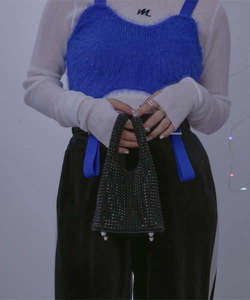 ・キラキラのラインストーンが目を引くバケットバッグ。・取り外しができるチェーンストラップ付き。・コーディネートのアクセントにおすすめ。※当商品は機械による生産の過程上、どうしても"生地を織る際の糸の継ぎ目"や多少の"ほつれ"、他繊維の"混紡"、また、形やサイズや柄に多少の"誤差"が生じる場合がございます。※サイズは、実寸サイズを測っているため多少誤差がでる場合があります。製造工程の関係上、各採寸箇所実寸(平置き)より【約-3cm~+3cm】程度は誤差の許容範囲とさせて頂いておりますので、予めご了承くださいませ。※メーカーより密封状態で入庫し、検品時に再度袋詰めを行っておりますが、素材により染料等の臭いが強い場合がございます。※発送上の状態によって商品がシワになる場合がございます。※商品により色落ち・色移りがある場合がございますので、品質表示をご確認の上、お取り扱いにご注意くださいませ。【F】幅:15、高さ:14、マチ:14、持ち手:13、ショルダーストラップ:108