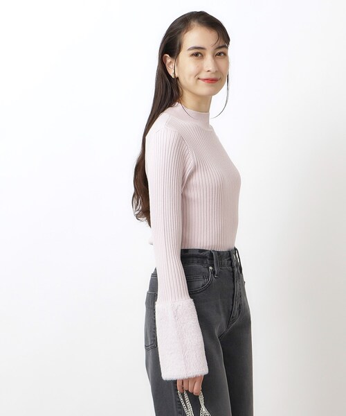 袖口シャギーのふわふわ感が可愛いリブニット【デザイン】・トレンドのふわふわシャギー素材をドッキングした、フレアスリーブデザインのニットです。・リブ編みの程よくフィットするコンパクトなシルエットなので、すっきりと着用いただけます。・首元は、ジャンスカなどのインにも着やすいハイネックデザイン。【素材】・温かみのあるリブ編みニットと袖口には毛足のあるシャギーニットを合わせました。・ご家庭でお手入れ簡単なマシンウォッシャブル素材。※製品寸法は平置きのスペックとなっております。こちらの商品は伸縮性があります。---------------【C(シー) OPAQUE.CLIP】「PLAYFUL FEMININE」をキーワードに、天然素材と美しくポジティブなカラー、ワクワクするようなディティールや、ミックス感のあるスタイルなどファッションの楽しさを詰め込んだ新レーベルです。モデル情報:身長166cm B72 W57 H84 着用サイズ:00店舗へのお問い合わせ商品番号:637-17080●製品寸法:00:着丈58cm B70cm 袖丈60cm 肩幅29cm備考: