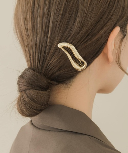 【目を引くプックリディテール】 プックリとしたシルエットがいつものヘアスタイルにニュアンスを効かせてくれるヘアピン。 シンプルなまとめ髪やお団子ヘアーなどに加えるだけで、一気に洒落感のある雰囲気を演出してくれますよ◎ パチンと留めるだけの簡単な付け心地もポイントです。 ※メッキ製品は変色しやすいため、こまめにお手入れすることをおすすめいたします。アレルギー体質の方や体調が低下している方など、かぶれることがありますので十分にご注意ください。 ※アクセサリーは壊れやすいものです。取扱いにご注意ください。 ※その他お取り扱いに関しましては、商品に付属のアテンションタグをご覧ください。 ※商品画像は、光の当たり具合やパソコンなどの閲覧環境により、実際の色味と異なって見える場合がございます。予めご了承ください。 ※商品の色味の目安は、商品単体の画像をご参照ください。 ▼お気に入り登録のおすすめ▼ お気に入り登録商品は、マイページにて現在の価格情報や在庫状況の確認が可能です。 お買い物リストの管理に是非ご利用ください。