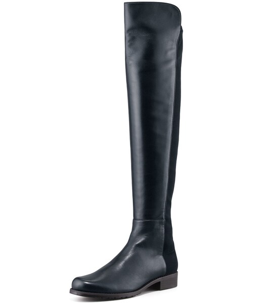 Napa leather boot with stretchy back offers custom fit. 20"H front shaft; stretches to fit most calf sizes. 1" stacked block heel. Tonal topstitching. Round toe. Leather lining and sole. Shoe width equivalent: M(Medium)=B. "50/50" is made in Spain.