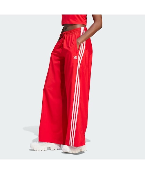 快適でカジュアルかつスポーティーなアティチュードで、長きにわたり愛され続けてきた、アディダスのトラックパンツ。これは、滑らかなウーブン素材を使用し、ちょっと過剰なまでにオーバーサイズシルエットに仕立てたバージョン。裾にバンジーコードが付いていて、長さの調節や、絞ってギャザーを寄せることもできる。ドローコードで調節可能なウエストが快適なはき心地をもたらす。