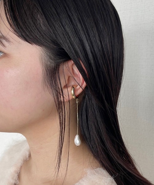 ーーー 【デザイン】 シンプルなフープにパールモチーフが前後に揺れる 片耳用イヤーカフ。 長さのあるチェーンが動くたびに揺れて 女性らしい印象に♪ ーーー ※屋外の光や照明の当たり具合で、実際の商品と画像の色味に違いが発生する場合がございます。 ※パールはイミテーションパールを使用しています。