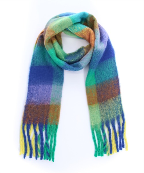 ポイントになる!チェック柄ボリュームマフラー。柔らかい肌触りで首元を温かくしてくれます!また、大ぶりのチェック柄がコーディネートのアクセントに♪