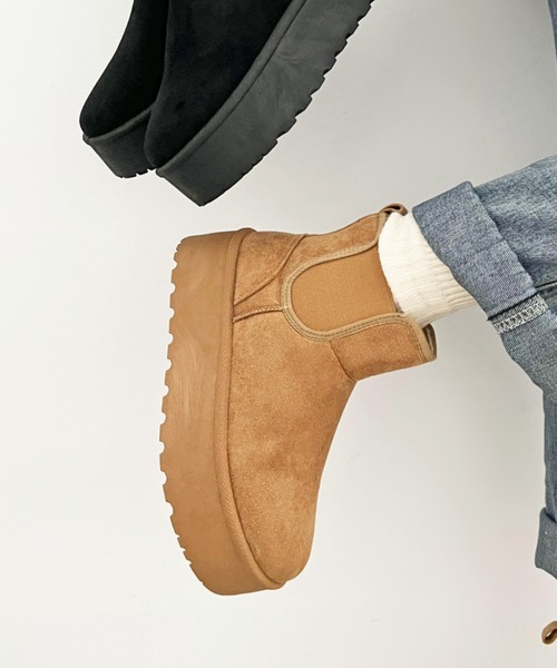 寒い時の必須アイテム、今どき見え厚底ムートン♪ 定番人気のサイドゴアタイプ。 昨年から人気の厚底ムートン! 今年は定番的なアイテムに。 人気のサイドゴアデザイン。 これひとつで今っぽく。サクッと履けてスタイルアップ。 中ボアで冬の足もとに嬉しい。 上質なフェイクスエード素材、中ボアしっかり、コスパGOOD。 旬のミニスカートとゆるソックス合わせ。 ワイドデニムや、ゆるパンツ。 トレンドコーデの足もとに履きたい♪ 冬のお出かけ、待ち時間のあるテーマパーク、トラベル、帰省。 シーズン中、長く活躍するアイテム。 寒い冬は大活躍! 要チェックな一足です。 【オススメPOINT】 ●今年は定番&今どき見えアイテム ●「厚め」プラットフォームソール ●ワイドボトムに厚底ムートンの組み合わせが旬 ●寒さ対策 【オススメシーン】 一日ショッピング、テーマパークでも疲れにくい。 お出かけ、ランチ、デート、ディズニーコーデ、ユニバコーデ、テーマパーク、イベント、通勤通学、初詣 【オススメコーデ】 ●冬服 ●アウター: ダウン、モンスターコート、MA-1、ブルゾン、アノラック、ナイロンパーカー、カーディガン、ファーベストに ●トップス: スウェット、ニット、ロンT、カットソー、シャツに ●ボトム: ミニスカート、スリット入りスカート、ロングスカート、ハーフパンツ、デニムに ●ゆるソックス、タイツ合わせ 【サイズ】 S(約22.5-23.0) M(約23.0-23.5) L(約23.5-24.0) LL(約24.0-24.5) ※全てMサイズ計測 ヒール/ソール高さ:約5.5cm ストーム高さ:約5.0cm 重さ(片足):約450g 筒丈:約13.0cm ※あくまでも目安となります。 下記について、ご確認の上、あらかじめご了承ください。 ※撮影はサンプル品を使用しており、実際のお届け商品についてデザイン、色味、表示のサイズ感が実物とは若干異なる場合がございます。 ※ご覧になっているモニターの色の違いにより、実際の商品と色味が異なる場合があります。 ※商品のデザインやお客様の足の形によって感じ方に若干の個人差がございます。 ※生産時期により色・素材・サイズ感など多少異なる場合がございます。 ※軽量仕様の商品の靴底は製造上、靴底にわずかな気泡がある場合がございます。 ※商品により加工を施しているものは、一部に筋上、ムラがあることがありますが製品の特性上となります。 ※商品のお届けの際にシューズ箱にへこみ等が生じる場合がございます。 ※装飾品は取れやすいので、お取扱い・引っ掛けにご注意ください。 ※長時間での直射日光・照明の下での放置は変色の恐れがある為、お避け下さい。 ★☆お気に入り登録機能の使い方☆★ ◆商品のお気に入り登録 お気に入りアイテムの完売カラーの再入荷通知や、ラスト1点の通知、セールの通知も受け取ることができます。 ◆ブランドのお気に入り登録 新商品や再入荷など、クーポン配布などのお得な情報を受け取ることができます。