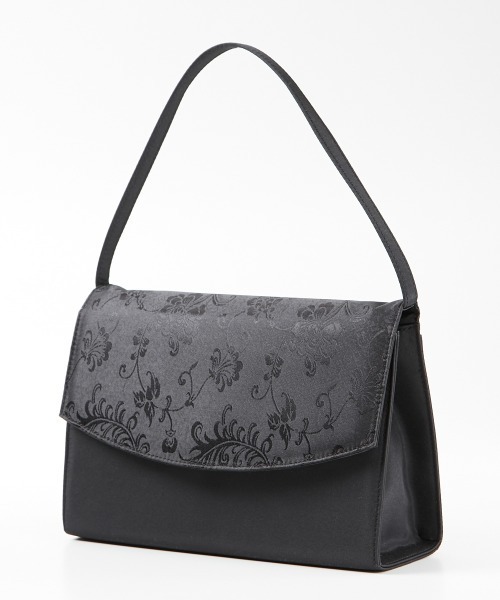 ・落ち着いたさりげない花柄デザインのフォーマルバッグ。・シーンを問わず冠婚葬祭にご使用いただけます。 ・袱紗、財布、スマートフォン、ハンカチやリップなどのちょっとしたメイク道具が入るサイズ感◎ <仕様> ポリエステル、サテン サイズ=約たて8×よこ(上部)約24(底部)27×まち幅8cm 開閉=ボタン ポケット=中:2個(オープン×2) ハンドル長さ=約42cm 重量=約240g ■キーワード 冠婚葬祭、春、秋、ブラックフォーマル、フォーマル、!セレモニー、入学式、入園式、卒業式、卒園式