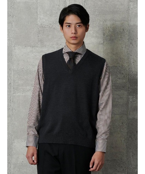 イタリアのE Miloglio(イーミロリオ)社の上質素材が心地いい、ウォッシャブル仕様のニットベスト。伸縮性に優れ、薄手なのでジャケットINもスムーズ。ネクタイの着用を考慮したやや深めのV開きは、タートルニットなどをレイヤードした着こなしでもバランスの良さを発揮します。◆モデルサイズ:身長180cm 胸囲96cm ウエスト83cm ヒップ92cm◆着用サイズ:L機能【上下ウォッシャブル】上下セットでコーディネートが簡単に決まるアイテム。シンプルでスタイリッシュな印象を与えます。【秋冬】秋冬シーズンにぴったりの暖かく、季節感を演出するアイテム。寒い日でも快適に過ごせます。2024年11月15日より素材混率に一部変更がございます。変更前:アクリル48%ウール43%ナイロン9%【注意事項】※使用前に、タグ等に記載されている「取り扱い上の注意書き」、「洗濯表示」を必ずご確認ください。※商品画像は、光の当たり具合やパソコンなどの閲覧環境により、実際の色味と異なって見える場合がございます。 あらかじめご了承ください。【商品のお気に入り登録がおすすめです】お気に入り登録した商品は、最後の1点の通知、完売商品の再入荷、お得なお値下げ時にお知らせします。【Perfect Suit FActory/P.S.FAのお気に入り登録がおすすめです】PSFA新商品発売、再入荷や、セール情報など、お得な情報を受け取ることができます。
