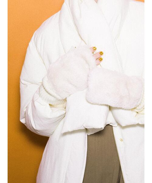 ふわふわのエコファーとニットをドッキングしたグローブです。 フィンガーレスタイプになっており、タッチパネルなどの操作がスムーズに出来るのも便利なポイント。 袖口部分はリブ編みで心地よくフィットするのも◎ コーディネートにプラスワンするだけで、シーズンムードも一層高まるアイテムです。 ・MACHINE WASHABLE 洗濯機洗いが可能です。 ※商品画像は、撮影環境やお客様のご利用のPC・スマートフォンのモニター環境などにより実物と色味に差異がある場合がございます。 【その他採寸】 F 全長:23cm