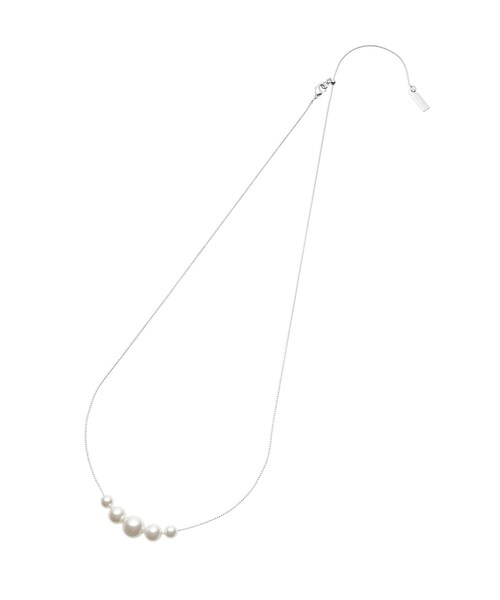 【デザインポイント】 グラデーションサイズのフェイクパールをトップにあしらったシンプルで上品な印象を演出するネックレスです。 セレモニーシーンにも活躍する華やかさのあるデザインです。 チェーン部分は繊細でシックなスネーク型のものを使用し、デコルテ回りにメリハリをつけてくれます。 【スタイリングポイント】 セレモニーシーンのスタイルはもちろん、オフィスやお食事などのちょっと華やかにしたい場面まで汎用性の高いアイテムです。 店舗へのお問い合わせ商品番号:127-01212 ●製品寸法: 00(FREE):全長58cm モチーフH71cm モチーフW1cm 付属袋H12.5cm 付属袋W10.5cm 備考: