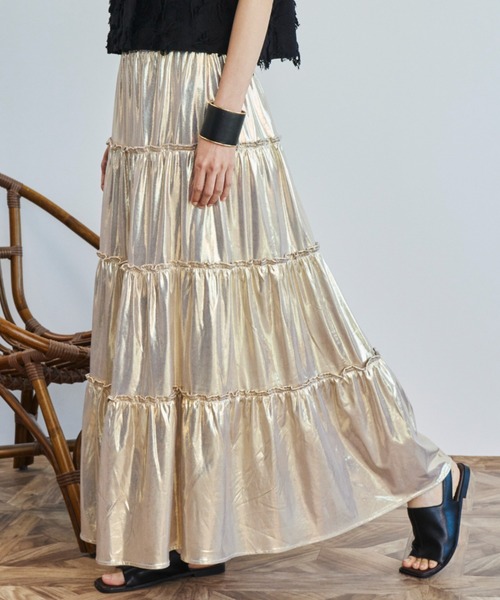 今年らしいスタイリングに欠かせないメタリック素材のロングスカート。 ボリュームのあるティアードギャザーが動くたびに揺れる魅力的なシルエットです。 ■styling ・柔らかな素材のニットと合わせて メタリックなスカートと、冬らしい毛足のあるニットとのバランスが絶妙に仕上がります。 ・オーバーサイズのトップスやチュニックワンピースとのレイヤード 裾からメタリックカラーがチラリと覗くだけで今年らしいコーディネートに。 《point》 ・スタイリングに新鮮さを加えてくれる、今年らしいメタリック素材 ・動くたびにきれいに揺れるティアードギャザーデザイン ・ゴムウエストで着心地抜群 《detail》 ・存在感のある3段ティアード ・ニットもインできるゴムウエスト 《fabric》 ・今年らしい、トレンドをおさえたメタリック素材 ・軽いので重衣料との合わせもおすすめ サイズ ウエスト:62cm~最大104cm …………………… 透け感 : 無し 厚さ:普通 伸縮性:なし 裏地:なし お手入れ方法 手洗い × お取り扱い上のご注意: お手入れはドライクリーニングをおすすめします。 ※この製品は独特の光沢感を表現するためにポリウレタンコーティングを施しています。 ・アイロンがけはお避け下さい。 ・酸やアルカリにより変色することがあります。接触にご注意ください。 ・クリーニング後はビニールを外して風通しの良い場所で保管してください。 詳しくは付属の「お取り扱い上のご注意」をご確認ください。 …………………… ※ご注意※ ・屋外の光や照明の当たり具合で、実際の商品の色味とカラー別画像の色味に若干の違いが発生する場合がございます。 ・詳細画像と併せてご確認の上、ご注文いただきますようお願い致します。 【 Libra Cue 】 “包み込むような気持ちよさを” 快適で豊かな生活を送りたい そんな暮らしの”きっかけ”となるデイリーウェアをご提案します 【 商品のお気に入り登録 】 完売カラーの再入荷通知やラスト1点の通知プライスダウンの通知も受け取ることができます。 【 ブランドのお気に入り登録 】 新商品や再入荷など、ブランドの情報をいち早くお知らせします。 ※ご注文いただいた予約商品のお届け時期確認は、注文履歴ページより行えます。