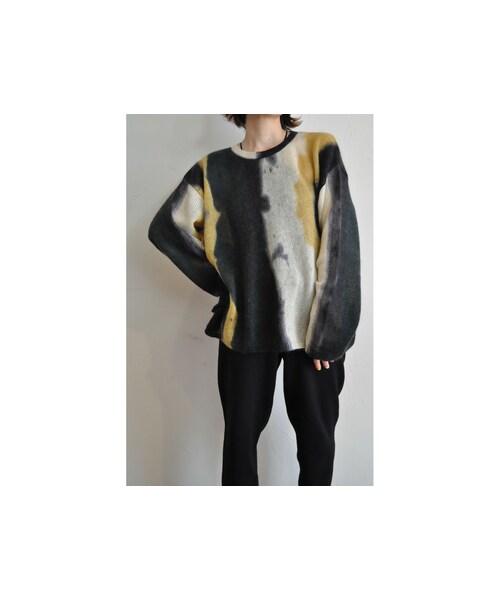 南アフリカ産の上質なキッドモヘヤを使用したニットプルオーバー。 滑らかな肌触りと光沢が特徴です。 植物の「斑」と「根」を段染めの毛糸で表現してみました。 身頃、袖の各パーツを編みたてして、そのパーツを一枚ずつ染色しています。 今回はロングピッチという技法で、4色のグラデーションになるように配置しました。 *段染めを施していますので一点一点柄に個体差があります。 ●商品一覧トップページはこちら↓ http://urx3.nu/LHHy