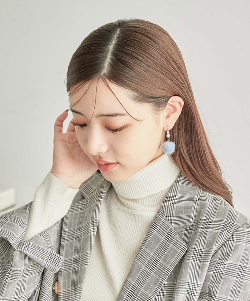 異素材パーツの組み合わせで新鮮な仕上がりに。 【デザイン・シルエット】 ・フェイクファーのポンポンをあしらった、秋冬らしい佇まいのピアス。 ・パールビーズを組み合わせて華やかさをアップ。 ・同シリーズでネックレス(品番:GIZ63140)も展開。 【カラー】 ・ライトグレー、アイボリー、サックスブルー、イエローの4色展開。 【スタイリングポイント】 ・花柄ワンピースなど、女性らしいスタイリングの日におすすめ。 ・モノトーンの服が多い人は、ブルーやイエローを選んでワンポイントに。 ※撮影時の光、お使いのモニター環境によって色の見え方が違う場合がございます。