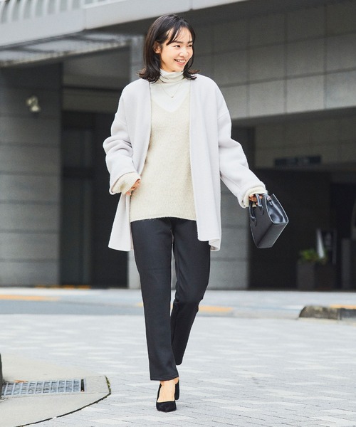 魔法のようななめらかな肌ざわり あたたか裏起毛パンツ 《CROSS WEATHERの嬉しい機能》 ●裏ベロアでしっかりあたたか 裏側全面にベロア起毛素材を使用した、あたたかスキニーパンツ。 表面のストレッチ生地と起毛素材を二重で重ね、お腹周りから足首まで冷えから守ります。 ●着心地抜群なストレッチ素材 ストレッチのしっかり効いた素材で、動きやすく着心地抜群。 ウエストゴムとストレッチ素材で、ストレスフリーな穿き心地。 レギンス感覚で着用いただけます。 ※カラーによって伸縮性が少々異なります。 ※インディゴブルー、ライトインディゴブルーは他カラーより伸縮性が弱いためワンサイズ上をおすすめしております。 【デザイン】 ■細見えが嬉しいスリムシルエット あたたかさはキープしつつも、すっきり脚をきれいに見せてくれるスリムシルエット。 分厚すぎない生地で着膨れしにくい◎ バックポケットでヒップラインも美しく見せてくれます。 ※フロントポケットはフェイクデザインとなっております。 ■選べる4サイズ S/M/L/LLの4サイズ展開。 低身長さん~高身長さんまで、自分にぴったりのサイズが見つかる◎ ■豊富なカラー展開 ベーシックカラーからコーディネートのアクセントになるカラーまで豊富に展開♪ カジュアルからきれいめまで様々なスタイリングで活躍します。 【コーディネート】 ・オーバーサイズのトップスとの相性抜群。きれいにコーディネートがまとまります。 ・Tシャツ、ブラウス、ニットなどどんなアイテムとも合わせやすく、あると重宝する着回し力抜群の1枚です。 【カラー展開】 ブラック アイボリー チャコール グリーン ローズピンク ブルー ネイビー 【サイズ展開】 Sサイズ Mサイズ Lサイズ LLサイズ モデル身長:165cm 着用サイズ:Mサイズ 【洗濯・取り扱い】 洗濯:ネットを使用して洗濯可能 アイロン:アイロン可 乾燥:タンブル乾燥不可 ------------------------------------- 透け感:なし 伸縮性:あり 厚み:普通 -------------------------------------- ※撮影時のライティング、ご覧になっているモニター・PC環境により実際の商品と色味が異なって見える場合がございます。ご了承の上お買い求め下さい。