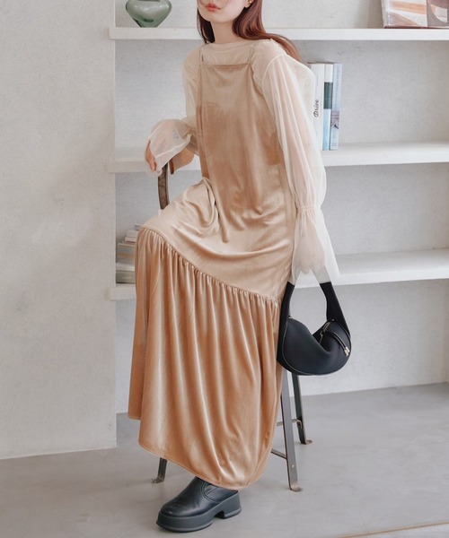 美シルエットが魅力のベロアキャミワンピース ■デザイン ティアードデザインが大人可愛いワンピース。 適度な光沢感のベロア素材が上品で高見えする一枚。 動くたびに揺れるギャザーが女性らしさを引き立てます。 肩紐は長さ調節可能で、ポケット付きなのも嬉しいポイント。 ■コーディネート コンパクトトップスと合わせたキレイめスタイリングがおススメ。 ニットやスウェットを上から被ってカジュアルダウンさせるのも〇 足元はボリュームのあるブーツやローファーがマッチします。 ■素材・洗濯表示 素材:ポリエステル95%,ポリウレタン5% 洗濯:手洗いまたは洗濯ネットに入れ洗濯機の手洗いコースで洗濯可能 タンブル乾燥:不可 アイロン:110℃まで ※汗や水、摩擦により他のものに色移りすることがありますのでご注意ください。 ※濃色製品は色落ちする恐れがありますので他のものと分けて洗い、洗濯後は早めに干してください。 ※サイズ採寸は各モールによって異なり、生産時期により色・素材・サイズ感など多少誤差が生じる場合がございます。 ※撮影画像はサンプル品を使用しているため、実際の商品とカラー、仕様、加工、サイズが若干異なる場合がございます。 使用しているパソコンのモニター設定や、携帯電話のメーカー・機種により実際のカラーと異なって見える場合がございます。予めご了承ください。 ▼商品のお気に入り登録 ハートマークをクリックし、お好きなカラーを選んでお気に入りに登録 完売カラーの再入荷通知や、ラスト1点の通知、セールの通知も受け取ることができます。 ▼ブランドのお気に入り登録 新商品や再入荷等、いち早くブランドのお得な情報を受け取ることができます。 <返品・キャンセルについて> ・着用・洗濯後の返品・ご交換は致しかねます。 ・商品到着後、着用前に商品を確認して頂きますようお願い致します。
