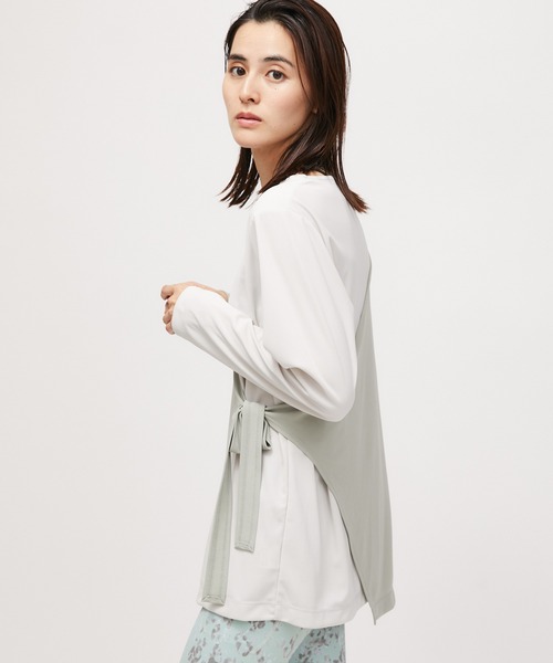 【デザイン・ シルエット】 身頃がカシュクールのように重なっているデザインのTシャツです。 UV&接触冷感&吸水速乾と、多機能なのも嬉しいポイント。 【素材】 ジョーゼットのようなキレイ見えする柔らかい生地です。 ----------------------------- 裏地:なし 光沢感:なし 透け感:なし 伸縮性:多少あり 生地の厚さ:普通 ----------------------------- 【着用サイズ】 モデル H169 B81 W58 H89 着用サイズ FREE ※実際の商品はお客様のお使いの端末や閲覧環境により、写真と実物の色味や質感が多少異なって見える場合がございます。予めご了承ください。