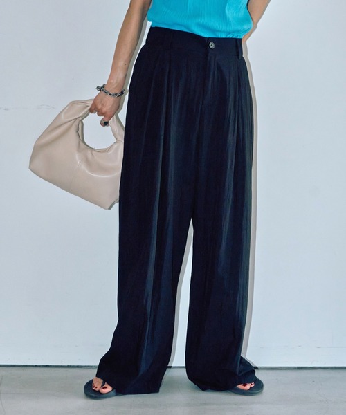 レッグラインを綺麗に見せてくれるフロントタックワイドパンツ 身体のラインを拾いすぎない立体的なフォルムがレッグラインをスラっと綺麗に見せ、脚長効果が期待できます。 また、きちんと感がありながら後ろがゴムになっているので楽に履いていただけるのも嬉しいポイントです。 使いやすいニュアンスカラーのグレー、アイボリーに、万能カラーのブラックの3色展開でご用意しています。 サラッとした薄手の素材を使用しているので、夏場でもおすすめ。 《スタイリング》 コンパクトなタートルからボリュームトップスまで、幅広いアイテムと相性抜群です。 シャツと合わせてきれいめカジュアルにも使用いただけます。 合わせるトップスを選ばずに重宝いただける定番ボトムです。 ※販売商品以外はモデル私物となります。 ------------------------ 透け感/あり(アイボリー) 光沢感/なし 伸縮性/あり 裏地/なし ------------------------ ワイド/ワイドパンツ/スラックス/ズボン/カジュアルパンツ/カジュアル/綺麗め/オフィスカジュアル/モード/シンプル/ゆったり/シンプル/ベーシック/春/夏/秋/冬/梅雨 LIENCOEUR(リアンクール) ー身に纏うだけで、凛とした気分にー 「都会的で洗練されていながらも心地よく、ファッションを日常的に楽しむことができる」 「自分のスタイルに落とし込みやすいアイテムに、さりげない新しさを」 普段のクローゼットに彩りをプラス。 毎日を大切に過ごす、すべての人に寄り添うアイテム・スタイルを提案します。 商品のお気に入り登録 完売カラーの再入荷通知や、ラスト1点、セールの通知などお得な情報をお知らせいたします。 ブランドお気に入り登録 新商品や再入荷など、いち早くブランドの情報を受け取ることができます。 【注意事項】 ※商品を使用前に、タグ等に記載されている「取り扱い上の注意書き」、「洗濯表示」を必ずご確認ください。 ※商品画像は、光の当たり具合や閲覧環境により、実際の色味と異なって見える場合がございます。あらかじめご了承ください。