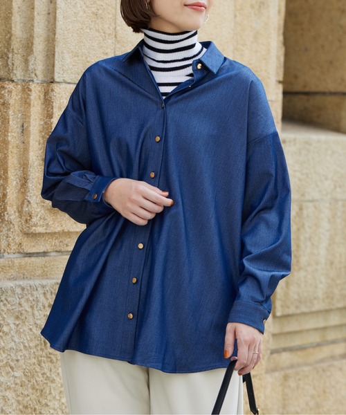 1枚でもレイヤードでも様になる シャツチュニックプルオーバー ■point レーヨンのしなやかで着心地のいいシャツチュニック。 後ろに施されたタックが後ろ姿までこなれ感を演出してくれます。 気になるヒップラインをカバーしてくれる丈感で、体型カバーにも◎ ニットの中にレイヤードしたり、インナーにタートルニットを 重ねたりとレイヤードスタイルも楽しんで頂けます。 ■coordinate 秋口はシャツ1枚で冬になるとニットやカーディガンなど レイヤードスタイルを楽しんで頂けます。 ■fabric 再生繊維(テンセル)90% 綿10% -------------------------------------------------- 裏地:なし ポケット:なし 光沢感:ややあり(デニム) 伸縮性:なし 生地の厚さ:普通 洗濯方法:手洗い可 -------------------------------------------------- ※商品画像は着用イメージです。 光や角度により、実物と色味が異なる場合がございます。また表示のサイズ感も実物とは若干異なる場合もございますので、ご了承ください。 ※着用、お取り扱いの際は、商品についている品質表示とアテンションタグを必ずご確認ください。 -------------------------------------------------- ♡をクリックでお得な情報をお知らせいたします。 <商品お気に入り登録> お気に入りアイテムのお値下げ・再入荷・在庫ラスト1点など通知を受けることができます。 <ブランドお気に入り登録> Chez toiの新商品・再入荷・SALE・クーポン配布などお得な情報を受けることができます。 -------------------------------------------------- Cheztoi/シェトワ フランス語で「あなたの家」という意味。 自分にまっすぐでそしてしなやかに生きる女性に向けたブランドです。