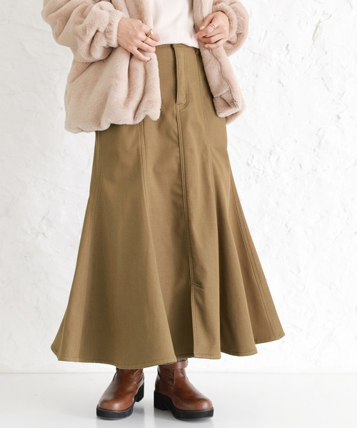 すっきり脚長魅せのあったか裏ベロア。吸湿発熱、保湿の機能付きで寒い時期の着回しに最適。穿きやすくするために追及した美シルエットと、暖かさを感じる機能面のいいとこどり。+5.2℃発熱のあったか素材。身体から発する水分を利用し、繊維を発熱保温する吸湿発熱・保温機能で優しいあたたかみを感じる一着。生地自体が保湿性を持っており、肌の油分を過剰に吸収することがなく、乾燥しがちな季節の肌にやさしい素材です。ぐーんと伸びる楽ちんストレッチで、穿いているのを忘れてしまうほどの快適な穿き心地。表側は柔らかな肌触りのツイル生地。裏側全面にベロア起毛を貼り合わせることで、ふんわり優しいあたたかな穿き心地に。縦の切り替えラインが生み出すすっきり脚長見せシルエット。前開きデザインだから着脱しやすくゴム仕様でウエストらくちん。ダブルステッチで立体感のある切り替えラインに。メーカーと共同開発したオリジナル素材×デザインで仕立てた商品です。≪ n'OrLABEL ≫裏ベロアマーメイドスカートです。
