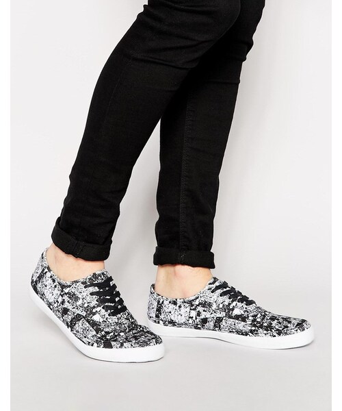 Plimsolls by ASOS Printed canvas Lace up fastening Contrast flat sole Textured grip tread Wipe clean with a damp sponge 100% Textile upper