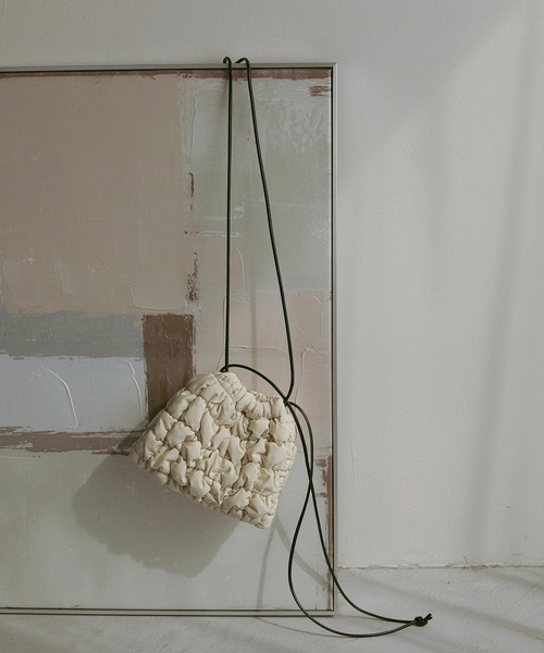 【ふっくらとしたキルティング風素材】 ・おでかけにちょうどいいサイズ ・肉厚でふっくらとした素材感 ・馴染みやすい3色展開 コンパクトでもポコポコとした素材で存在感のあるバッグ。 本体にたいして華奢なショルダーひもでラフに持てます。ショルダーは結んだりして長さ調整するのもおすすめです。 【EFOLE/エフォル】 2020SUMMERからスタート。EFFORTLESSとSIMPLEをキーワードとし、ほどよく肩の力が抜けたファッションに合うミニマルでシンプルなバッグブランド。毎日のお洋服選びに合わせてバッグも選べるようカジュアルから甘め、きれいめまで使えるバッグを提案しています。 ※素材の特性上、サイズ感に多少の個体差がありますのでご了承ください。 ※商品画像はサンプルのため、色味やサイズ、仕様等に変更が生じる場合がございますので、予めご了承ください。 PC対応:× A4収納:× ハンドルの高さ:なし ショルダーベルトの長さ:105cm 肩掛け:○ バッグの口開けタイプ:巾着 ポケット個数外側:なし ポケット個数内側:オープン1 裏地:ポリエステル