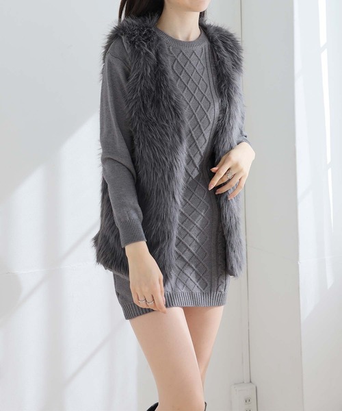 《こなれ感のあるエコファーベスト》 ■デザイン 着るだけでこなれ感のある印象にしてくれるファーベスト。 ふわふわのフェイクファーがシーズンムードを高めてくれます。 マストで取り入れたいアイテムです。 ■素材 毛足の長いフェイクファーが価値観をプラス ■スタイリング インナーとのレイヤードコーディネートを楽しむのがおすすめ。 ハイネックのニットやワンピースと合わせると、大人っぽい印象になって◎ ロゴトレーナーと合わせたカジュアルミックスコーデにも◎