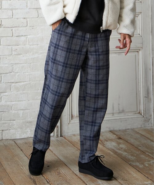 """秋冬コーデの主役になってくれるチェック柄テーパードパンツ。イージー仕様でリラックスな履き心地ながら、きれいめテーパードで大人の男性でも着やすいシルエットです。【素材】秋冬通して着用可能なTR(ポリエステル/レーヨン)混の起毛素材。【デザイン】マーケットに定着されつつあるワイドシルエットパンツ。ウエストはイージー仕様で、ベルト無しでも着用可能です。【ikkaポイント】ワイドパンツを ikka 風にアレンジ。ウエストから太ももはしっかりサイズを出しながら、膝から下にかけてテーパ―ドを効かせ、誰もが履きやすいきれいめシルエットにしています。★《お気に入り登録》でお得な情報がいっぱい★・「商品のお気に入り登録」で再入荷通知や、ラスト1点の通知、セール通知も受け取ることができます。・「ブランドのお気に入り登録」で新商品や再入荷など、お得な情報を受け取ることができます!※商品の色味は、撮影場所や光のあたり具合などにより色味が違って見える場合がございます。また、お客様のお使いのモニター環境などにより色味が違って見える場合がございます。予めご了承の上ご注文下さい。※他のキャンペーンにより、期間中に価格が変動する場合があります。※セールは予告なく終了させていただく場合もあります。[クリーニング]洗濯機洗い可(非常に弱く)、洗濯の際はネットを使用してください"""