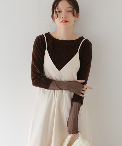 【2023AW】JOINT WORKSシンプルで使いやすいシアーベロアのトップス。どこから見ても可愛く見えるように、袖口をチュールに切り替えサムホールを入れています。また、センターバックにもホール開きにして、バックスタイルも抜かりない一枚です。【COMMRE / コムル】物や情報が溢れる世の中で自分らしくある為に洋服が不可欠であるように。スタンダード・エラボレート・ワーク・エスニック・ヴィンテージ・スポーツのキーワードを軸にトレンドをMIXさせて今の気分にちょうどいいリアルクローズを提案します。※取り扱いについては、商品についている洗濯表示にてご確認下さい。※商品の色味につきまして、お客様のお使いのPCのモニター環境により実際のカラーと画像の色味が違って見える場合が御座います。予めご了承の上、ご注文下さい。※店頭・外での撮影画像は光の加減で、実際の商品より明るく見える場合が御座います。商品の色味はスタジオ撮影の画像を参考にして下さい。モデルサイズ:身長:160cm 着用サイズ:フリー本体:洗濯機洗い(弱)