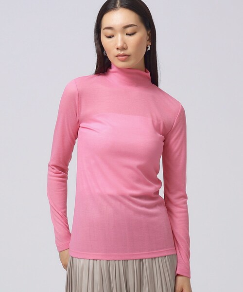 Design Point 薄手で軽い、さらりとした肌ざわり、着ていないかのような着心地のリブTシャツの新シリーズ。 首に沿うハイネックスタイルが印象的で、女性らしいキレイなシルエットが魅力です。 レイヤードスタイルのインナーに最適な一枚です。 Styling oint タイトなシルエットで長めの丈にしているので、インナーに最適です。 モデル情報:身長170cm B82 W60 H89 着用サイズ:38(M) 店舗へのお問い合わせ商品番号:523-17031 ●製品寸法: 38:着丈63cm B80cm 袖丈61cm 肩幅38cm 備考: