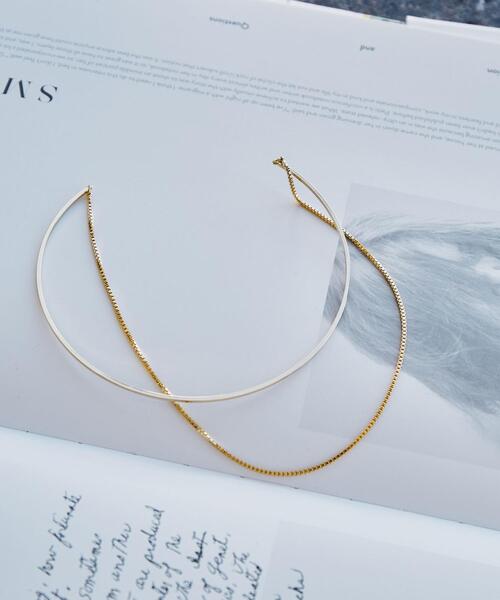 チェーンとメタルが2連になった個性的なチョーカー ■デザイン 動くたびに輝くチェーンとメタルの組み合わせが新鮮なチョーカー。 さりげなく首元で存在感を発揮し、身に付けるだけで華やかさを演出してくれます。 ご自身用にはもちろん、ギフトにもぴったりの一品です。 ■素材 真鍮 ■コーディネート シャツやクルーネックなど、シンプルになりがちなアイテムにプラスするだけで、トレンド感をアップさせてくれる一品です。 ・同シリーズのブレスレットのご用意もございます。対象品番:18336990404 【注意事項】 ※商品を使用前に、タグ等に記載されている「取り扱い上の注意書き」、「洗濯表示」を必ずご確認ください。 ※商品画像は、光の当たり具合やパソコンなどの閲覧環境により、実際の色味と異なって見える場合がございます。あらかじめご了承ください。 ※商品の色味の目安は、商品単体の画像をご参照ください。 店舗へお問い合わせの際は、全国のBEAUTY&YOUTH各店舗まで下記の品名/品番をお申し付けください。 品名:BLN BY CHNxMTL DBL COKR 品番:18336990405