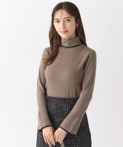 【Dress me up掲載】 バイカラーに金釦がポイントのミニマルなタートルニット 【素材】 ・綿タッチのアクリルとポリエステル混の脹らみのある糸を使用 ・目面が綺麗なのでカジュアル過ぎず、上品な印象 ・マシンウォッシャブル機能付きで、ご自宅で簡単にお手入れしていただけます。 【デザイン】 ・程よくフィットするタートルネックで、重ね着などのインナーや一枚着でも合わせ易いコンパクトなシルエット。 ・衿端と袖口にバイカラーの配色使いが効いていて、さっぱりし過ぎないアクセントもおすすめ ・タートルの後ろ側にさりげないスリットと金釦があしらわれていて後ろ姿もぬかりなく、コーディネイトしていただけます。 モデル情報:身長169cm B83 W60 H89 着用サイズ:38(M) 店舗へのお問い合わせ商品番号:C58-17029 ●製品寸法: 36(S):着丈52cm B74cm 袖丈54cm 肩幅30cm 首周り34cm タートル部分H12cm 38(M):着丈53cm B77cm 袖丈55cm 肩幅32cm 首周り34cm タートル部分H12cm 40(L):着丈54cm B80cm 袖丈56cm 肩幅34cm 首周り35cm タートル部分H12cm 42(LL):着丈55cm B84cm 袖丈57cm 肩幅36cm 首周り36cm タートル部分H12cm 備考: