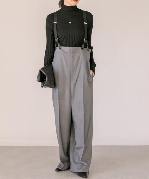 コーディネートのはずしに最適なワイドパンツ●デザインすとんとしたワイドストレートのパンツ。マニッシュなピンストライプでコーディネートのアクセントになるアイテムです。付属のサスペンダーで吊った状態で履いたり、ウエスト部分のドロストをきゅっとしめてジャストウエストで着たりと着こなし次第で様々な雰囲気を楽しめます。ニットと合わせてもカジュアルになりすぎず、シルエットを楽しめるようウエストやヒップも大きめの作りになっているため脱ぎ着も楽ちん。見た目の可愛さだけでなく、楽ちんな着心地にもこだわったおすすめアイテムです。●おすすめスタイリングアイテムカシミヤ5%バックスリットニット【MONN.:.(モン)】コットンハイネックニットラグランPコートデニムジャケット●素材ポリエステル 68%レーヨン 29%ポリウレタン 3%・さらっとしたややハリのある素材洗濯方法:手洗い可透け感:なし裏地:なし伸縮性:なし生地の厚さ:ふつう光沢:なしファスナー:ありポケット:あり--------------------------------------------------------------------------------【注意点】※画像の商品は光の照射や角度、お使いのモニター環境により、 実物と色味が異なる場合がございます。※入荷状況により、お届け予定が前後する場合があります。※お客様への発送が店頭販売より遅れる場合もあります。※追加生産商品は、一部の店舗、通販で販売中の場合がございます。 予めご了承下さい。--------------------------------------------------------------------------------#今買いアイテム