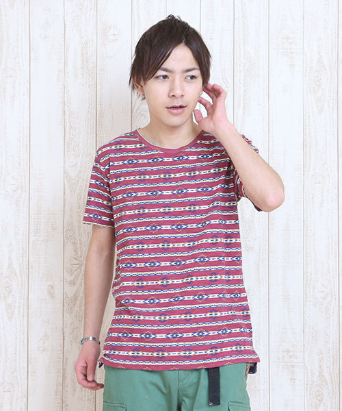 肌触りのいい着心地抜群の半袖プルオーバー。 ナバホ柄とボーダーの組み合わせが、 程よくエスニック感があって目を引きます! 1枚でもインナーとしても着られる、着まわしやすいTシャツ。 汗もしっかり吸収するコットン100%がうれしいです。 ◆TITICACA◆ チチカカからあなたにお届けするエスニックアジアンファッション。 身につけるだけでHAPPYになれるボヘミアン・フォークロア調のデザインを豊富に取り揃えています。 ワンピース、セットアップ、サロペット、デニムパンツをはじめ、ガウチョパンツ、スカーチョ、ワイドパンツ、アクセサリーなどのレディースアイテムや、ジョガーパンツやカーゴパンツ、リュック、スニーカーなどのメンズアイテムなど、品揃え盛りだくさん♪ フェアトレード認証商品やハンドメイド商品など、他にはない商品やキッズ・レディース15号/17号・ホーム雑貨まで幅広く展開中です!