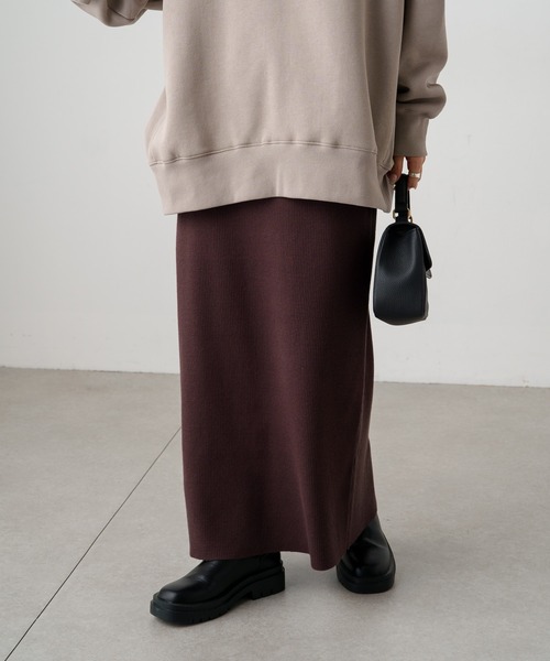 ピュアルセシン 2023 AW collection【neo classic】 ◇ラフな穿き心地と着回し力を兼ね備えたナロースカート◇ ●商品のお気に入り登録 クーポンやタイムセール、再入荷通知やラスト1点などお得な情報を受け取ることができます。 ご登録をお忘れなく◎ ●デザイン フィットしすぎず体のラインを拾いにくい絶妙なIラインシルエットが魅力のリブスカート。 伸縮性の良いリブニット素材は秋から春にかけてロングシーズン着用いただけます。 ウエストは総ゴム+紐で様々な体型にフィット。 ナローシルエットでありながら適度に厚みがあるので、体のラインを拾いすぎないのも嬉しいポイント。 バックスリットをプラスすることで程よい抜け感と足捌きが良く仕上がりました。 ●カラー展開 グレー/ブラウン/ブラックの3色展開。 ●素材 もっちりとした肌当たりがやみつきになるリブニット素材。 伸縮性抜群&滑らかで優しい肌触りが特徴です。 ●スタイリング ハイウエストなのでショート丈トップス合わせや、ビッグシルエットトップス合わせてよりカジュアルダウンさせるこなれた着こなしも◎ 季節の変わり目にはシャツやジャケット、ベストなどのレイヤードスタイルに、春から秋口にかけてはTシャツやニットカーディガンを合わせたりと、ロングシーズンで幅広い着回しが楽しめます。 =============================== 透け感:なし 裏地:あり 伸縮性:あり 光沢感:なし 生地の厚さ:普通 【スタッフコメント】 年齢:20代後半/身長:154cm/普段着用サイズ:Mサイズ サイズ感:足首がすっぽり隠れる丈感。スニーカーやローヒールでも安心です。 素材感:もちもちと弾力を感じるリブニット素材。ひざ丈の裏地付きで安心感があります。 =============================== ※撮影場所やお使いのモニター環境により若干お色味が異なる場合がございます。特にロケの撮影では明るく見える傾向にございます。 ※予約商品はサンプルで撮影をしております。若干の仕様が変更になる場合がございますので予めご了承の上ご注文くださいますようお願いいたします 。
