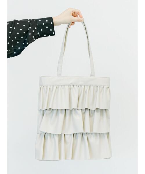 ティアードフリルのデザインが可愛らしさを演出するトートバッグ。 しなやかなフェイクレザーを使用し、コーディネートを引き締める効果が得られます。 小物類を整理できる内ポケット付きもポイント◎ デイリーユースやお出かけシーンに重宝したいアイテムです。 ※商品画像は、撮影環境やお客様のご利用のPC・スマートフォンのモニター環境などにより実物と色味に差異がある場合がございます。