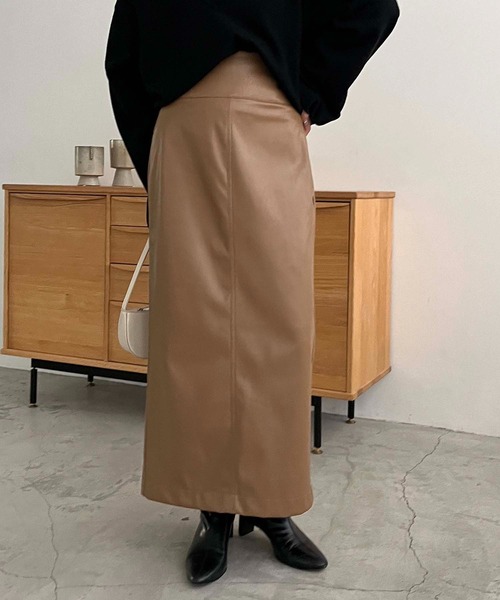 細見え効果抜群のレザースカート商品ポイント・Iラインシルエットですっきり見え・ハイウエストでスタイルアップ効果も◎・スリット入りで足捌きもしやすい・バッグゴムで楽な履き心地スタイリングポイント・ゆるっとオーバーなニットと相性抜群・スウェット合わせでカジュアルダウンさせたスタイリングもおすすめ**********************透け感:なし裏地:あり伸縮性:なし光沢感:あり**********************▼洗濯方法ドライクリーニング※撮影場所やお使いのモニター環境により若干お色味が異なる場合がございます。特にロケの撮影では明るく見える傾向にございます。※商品はサンプルで撮影をしております。若干の仕様が変更になる場合がございますので予めご了承の上ご注文くださいますようお願いいたします。▼商品のお気に入り登録完売カラーの再入荷通知や、ラスト1点の通知、セールの通知も受け取ることができます。▼ブランドのお気に入り登録新商品や再入荷など、いち早くブランドのお得な情報を受け取ることができます。