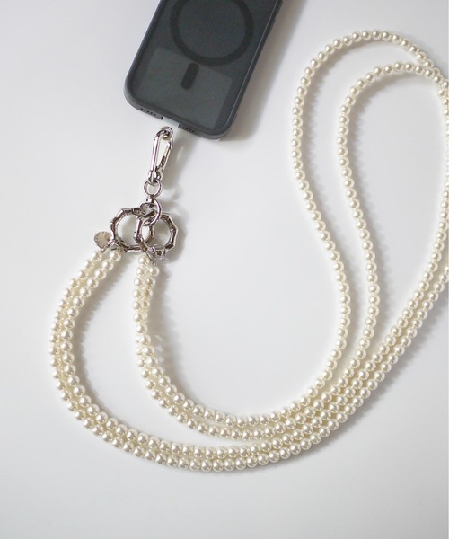 二連パールのショルダーストラップ。 高見えするアイボリーカラーで高級感があります。 ゴージャスな2連付けでもシンプルに1連にもアレンジ可能な2WAYタイプ フック1つのシングルタイプです。 ※コネクタ周りを覆うケースに使用出来ます。 全長107㎝(金具含まず) 長さ調節不可 重量110g ※撮影場所や明るさにより 実際の商品と色味が若干異なる場合がございます。 ☆商品のお気に入り♡登録を押せば ”再入荷通知”や”残りわずか通知” 値下げのお知らせが届きます! お気に入りのブランド登録していただければ新商品入荷のお知らせも届きますので 是非登録してみて下さい