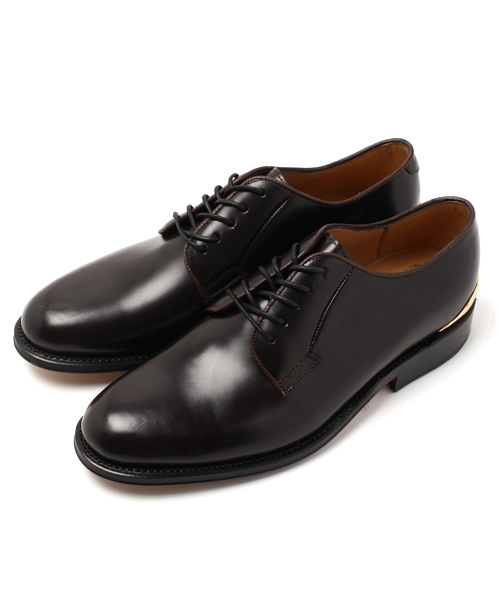 【 CAMINANDO / カミナンド 】 インターナショナルのファッションシーンに向け、2008年にスタートしたシューレーベル。 今では感度の高い世界のファッションピープルたちに深く愛されるブランドにまで成長し、日本を中心にアメリカやカナダ、ヨーロッパ各国でも大変高い評価を得る。 クリエーションの理念は、『いわゆる定番品番といったスタンダードモデルというものを基本的には設けず、常にイノベーションを繰り返しながら時代にフィットしたプロダクトを提案していく』こと。 And Aでは、レザーソールにゴールドのヒールカップを付けて別注オーダーしました。 グッドイヤーウェルト製法のプレーントウレザーシューズはゴールドの指し色がトラディショナルなデザインに遊びを加えます。 品番 1025151515