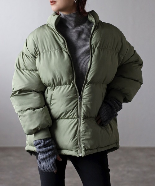 ◆デイリーコーデに活躍する冬の定番アウター◆ ボリューミーでしっかり暖かい、シーズンムード満点の中綿ジャケット。ハイネックなので防寒性があり、シンプルなワンカラーデザインは幅広いコーディネートに合わせやすい♪スマホをしまうのに便利なサイドポケット付き。 【素材】 表面:ポリエステル100% 中綿:ポリエステル100% 裏地:ポリエステル100% リブ:ポリエステル95%、ポリウレタン5% #エコダウン #フェイクダウン
