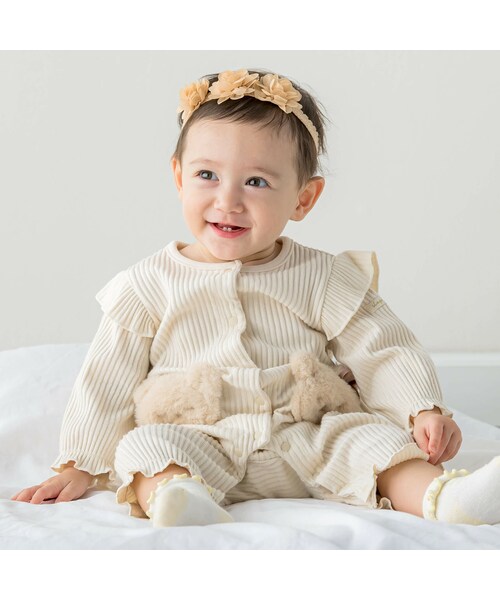 2つ並んだアニマルフェイスのファーパッチがインパクトのあるキュートな長袖ロンパース。 肌触りのいいファーを使用したアニマルフェイスのパッチは「オフホワイト:クマ」「ピンク:ウサギ」のカラーごとに異なる2パターンをご用意しました。 片方のアニマルにだけリボンがついているのがポイント◎ 肩にほどこしたフリルや裾口・袖口にあしらったメロウ・・・細かいところまで女の子らしい可愛さにこだわったアイテムになっています。 後ろにもフリルをほどこし、ハイハイしているときや座っているときなど、後ろ姿もキュートなアイテム仕上げました。 秋冬のお出かけやデイリー使いにピッタリ。 スナップボタンで全開になるので、首が座る前の赤ちゃんに着せやすく、新米ママにもおすすめ! 股下にもスナップが付いていて、足をバタバタしてもはだけにくく、オムツ替えもラクラクな設計になっています。 アニマルファーパッチを使用したおねえちゃんサイズのワンピース(1801-57046)も展開しているので姉妹やお友達とのお揃いコーデが◎ お揃いコーデを着て、おでかけを楽しんじゃお! 2023年秋冬女の子アイテム。 【SLAP SLIP(スラップ スリップ)】 ~子どもの欲しいをカタチに~ ヨーロッパのこどものように 子どもらしい今しか着れないナチュラルなかわいさを提案 どこか上品で清楚感漂うフレンチカジュアルは いつものコーディネートをさりげなく格上げ