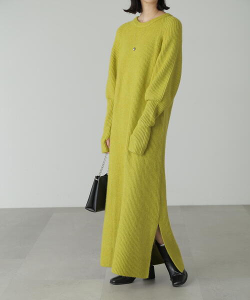 〔fabric&design〕 畔編みで程よいザックリ感がカジュアルな印象のニットワンピースです。 温かみのあるミックス感のある編地を使用し、身体のラインを拾わないナローシルエットです。 サイドにスリットを入れ抜け感をプラス。 ふんわりとしたラグランスリーブで、ひじ下からリブ編みに切り替えスッキリさせています。 長めの袖先に指穴付きでさり気ないトレンドディテールもポイント。 〔styling〕 ラメインナーなどをレイヤードさせ、足元はブーツを合わせたコーディネートがおススメ。 ■透け感:なし ■生地の厚さ:普通 ■裏地:なし ■伸縮性:あり ■光沢:なし ■シルエット:スタンダード ------------------------------------------------------ ◆商品のお気に入り登録◆ お気に入りアイテムの値下げ・再入荷・在庫1点などの通知を受け取ることができます。 ◆ブランドのお気に入り登録◆ 新商品や再入荷、セール、クーポン配布などお得な情報を受け取ることができます。 ------------------------------------------------------